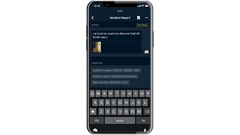 Build the incident record with additional data while still in the field. Dictate your primary narrative and the transcription is added to the record automatically.