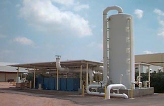 The SVE wells were connected by underground pipes to a central treatment system. Soil vapor from each well was extracted by vacuum blowers and treated by passing the vapor through three granular activated carbon (GAC) filters in series. The treatment system also included a liquid separator, particulate air filter and heat exchanger.