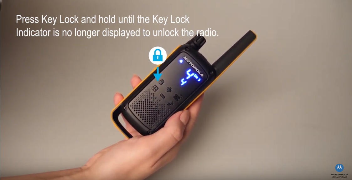 - Talkabout T82: Press ‘LOCK’ & ‘MENU’ & Power On (Volume knob)